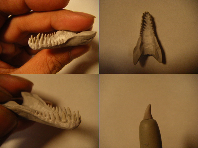 化石には歯の後ろに次の歯がもうある状態で発見されたものが見つかってます。本当はその様子も再現したかったんですが大きさが小さいので断念。いつか挑戦しようと思います。