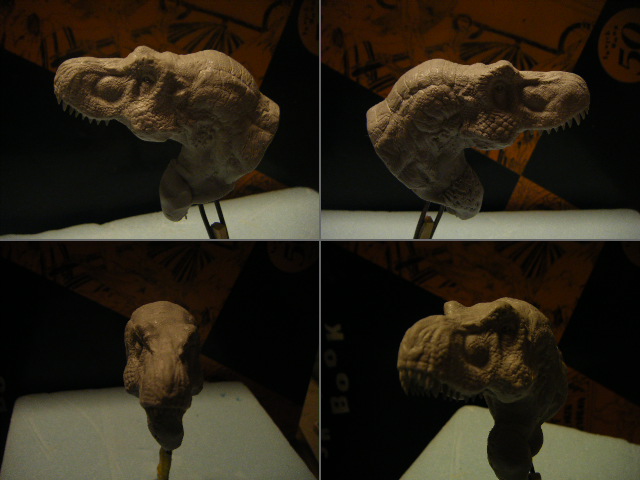 全体にポリパテが食いつかないようにメンタムを塗って、ポリパテを盛って、くるくるまわせばあら不思議、ティラノヘッドのチェス風台座ができましたーーーー