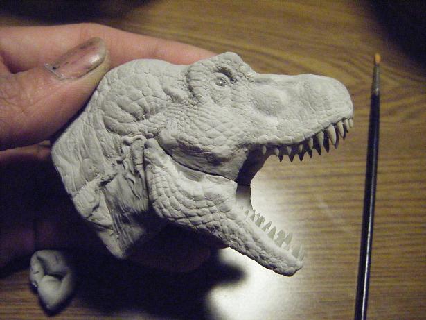 とりあえずヘラは1周しました。がまだ「粘土のまま」なところがありますね。上手い人は「ただの粘土」が「生き物の皮膚」になるのでひたすら粘土っぽさがなくなるようにディティーリングを心がけます。